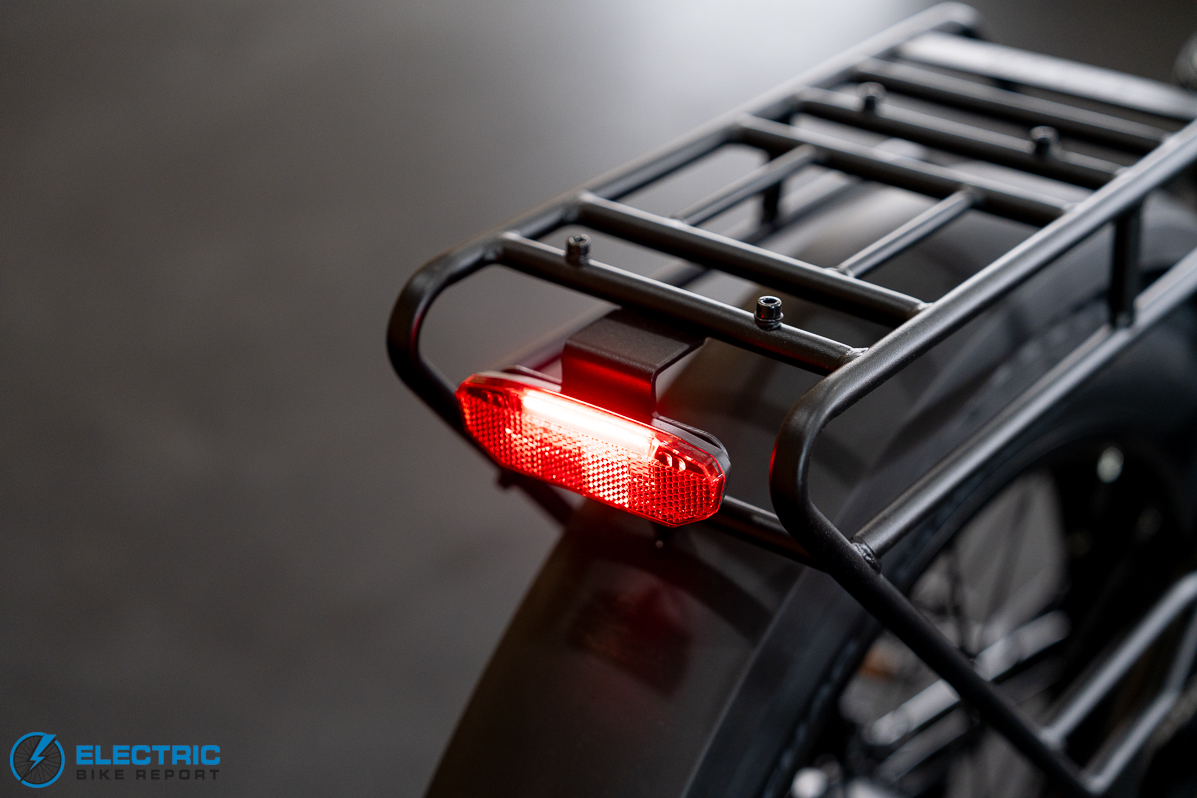 Lectric’s large, upgraded 850-lux headlight helps with visibility at dusk.